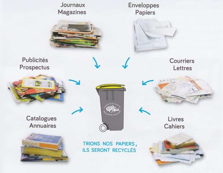 Eviter les papiers spéciaux (carbone, aluminium, sulfurisés, photos, papiers peints, mouchoirs) et papiers au contact d’aliments (emballages sandwich).